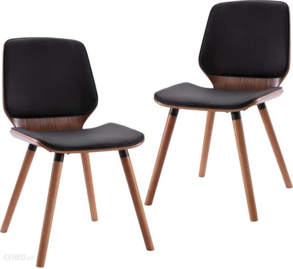 Zestaw ten składa się z 2 stylowych krzeseł jadalnianych i stanie się głównym punktem dowolnego pomieszczenia. Każde krzesło obito łatwą do czyszczenia, sztuczną skórą z grubym wypełnieniem, aby zapewnić optymalny komfort. Solidna, drewniana rama prezentuje prosty, nowoczesny design, który podkreśla unikatowy styl mebla. 4 drewniane nogi są mocne i stabilne. Ergonomiczna konstrukcja siedziska i oparcia podnosi poziom wygody krzeseł. Te krzesła stołowe są także proste w montażu.
