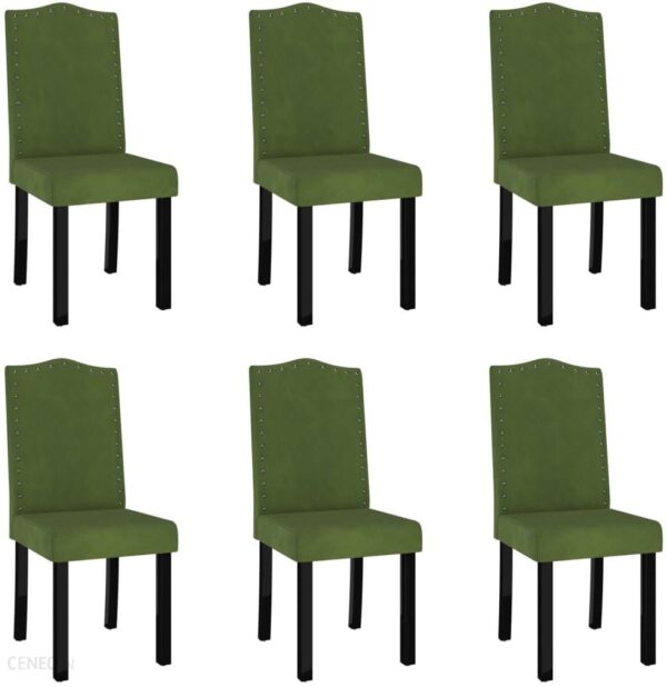 Krzesła mają elegancki i ponadczasowy wygląd, który przyciąga wzrok w jadalni lub kuchni. Stanowią również wygodne miejsce dla Twojej rodziny, aby zjeść obiad w jadalni lub poczytać i odpocząć w salonie.Pokryte grubą, miękką w dotyku tapicerką meble są ergonomiczne, aby zapewnić Ci komfort siedzenia. Nogi z litego drewna zwiększają ich stabilność i wytrzymałość.Kolor: ciemnozielony Materiał: aksamit (100% poliester), lite drewno kauczukowca pomalowane na czarno, lite drewno sosnowe pomalowane na czarnoMateriał wypełnienia: gąbka Wymiary: 42 x 53 x 95 cm (szer. x gł. x wys.)Szerokość siedziska: 42 cmGłębokość siedziska: 45 cm Wysokość siedziska nad ziemią: 46 cm Maksymalne obciążenie: 110 kg Przednie nogi z drewna kauczukowca i tylne nogi z drewna sosnowegoSrebrne ćwieki wokół oparciaWymagany montaż: takZawartość paczki:6 x krzesło stołowe