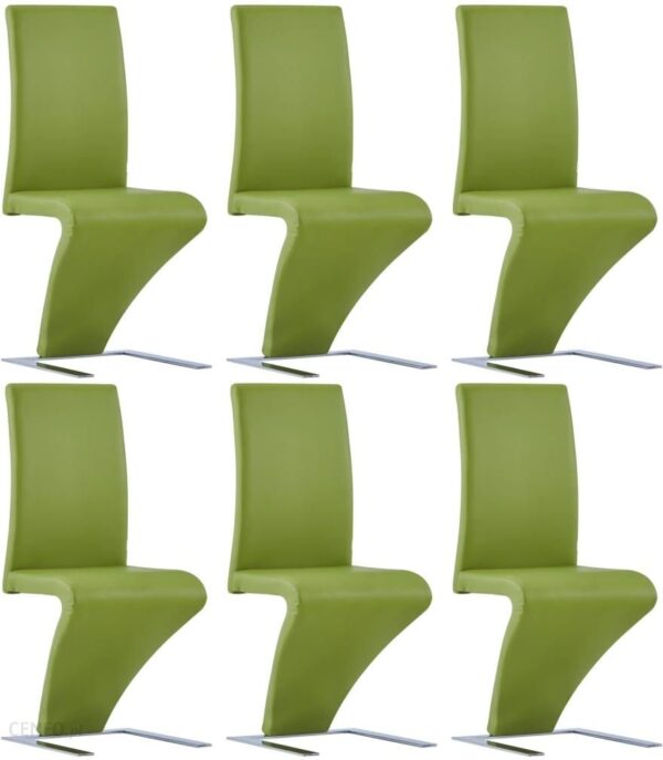 Zestaw wyjątkowych krzeseł stołowych wprowadzi ultranowoczesny styl do Twojej jadalni lub kuchni. Prezentuje on współczesny design o wyrazistych liniach i wygięciach.Trwała konstrukcja zapewni lata użytkowania. Ponadto, unikatowy, zygzakowaty kształt będzie przyciągającym uwagę elementem w jadalni.Krzesło ma ergonomiczne siedzisko i oparcie, które gwarantują komfort siedzenia.Przesyłka zawiera zestaw 6 krzeseł do jadalni.Kolor: zielony Materiał: sztuczna skóra + chromowane nóżkiWymiary: 44 x 58 x 99 cm (szer. x gł. x wys.)Wysokość siedziska: 48 cmSzerokość siedziska: 43 cm Głębokość siedziska: 44,5 cmW skład przesyłki wchodzi 6 krzeseł Materiał: Bawełna: 5%, PCV: 95%